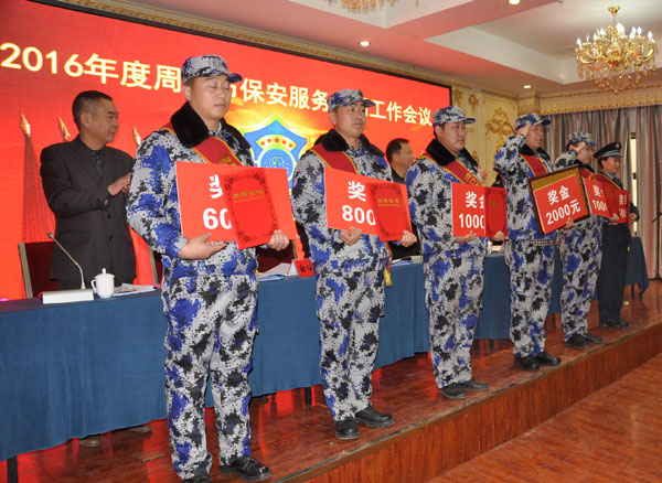 元月19日上午,召開了周口市保安服務(wù)公司2016年度工作會議。公司領(lǐng)導(dǎo)班子全體成員,機關(guān)全體同志,押運、人防、技防、縣(市)分公司的負(fù)責(zé)同志和先進(jìn)單位、優(yōu)秀個人共150余人參加了會議。周口市公安局對這次會議非常關(guān)注和重視,市局黨委委員、副局長程俊華,市局黨委委員、治安支隊長郭冰,治安支隊政委龍文欽、副支隊長白仙花、內(nèi)保大隊長李松林等領(lǐng)導(dǎo)同志親自到會。市銀監(jiān)局和市區(qū)各銀行的領(lǐng)導(dǎo)受邀光臨會議。會議由公司黨總支書記楊立德主持,程俊華副局長作了重要講話;公司總經(jīng)理鄭明山作了工作報告,對去年的工作進(jìn)行了簡要回顧總結(jié),安排部署了2016年度的工作;副總經(jīng)理耿學(xué)爭宣讀了《關(guān)于表彰2015年度先進(jìn)集體和先進(jìn)個人的決定》,大會對淮陽押運大隊和張海亮等59名先進(jìn)個人進(jìn)行了隆重表彰;副總經(jīng)理桂長虹宣布了押運、人防、技防等單位2016年度目標(biāo)管理安全責(zé)任書。