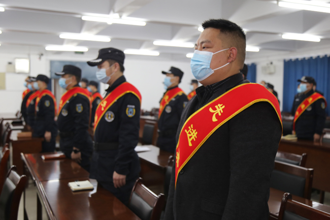 1月22日上午,周口市新時(shí)代保安服務(wù)有限責(zé)任公司隆重召開了2020年度工作總結(jié)暨表彰大會(huì),公司黨委班子成員,董事會(huì)、監(jiān)事會(huì)、經(jīng)理班成員,機(jī)關(guān)各部門負(fù)責(zé)人,押運(yùn)、人防各大隊(duì)長(zhǎng),技防、培訓(xùn)學(xué)校、各子公司、縣分公司負(fù)責(zé)人,先進(jìn)集體和先進(jìn)個(gè)人代表,共計(jì)40余人參加了會(huì)議。會(huì)議由公司黨委副書記、董事會(huì)董事侯長(zhǎng)建主持。黨委書記、董事長(zhǎng)范志剛作了工作報(bào)告;黨委委員、董事會(huì)董事鄭明山宣讀了《表彰決定》,通報(bào)表彰了7個(gè)先進(jìn)集體和82名先進(jìn)個(gè)人。董事會(huì)、監(jiān)事會(huì)、經(jīng)理班成員在前排就坐。為切實(shí)做好疫情防控工作,公司嚴(yán)格控制了參會(huì)人數(shù),采取了有效的疫情防控措施和制定了應(yīng)急預(yù)案。