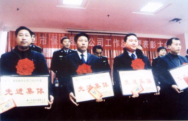 周口市公安局副局長劉祥東等領(lǐng)導(dǎo)為保安公司先進(jìn)集體頒獎(jiǎng)留念